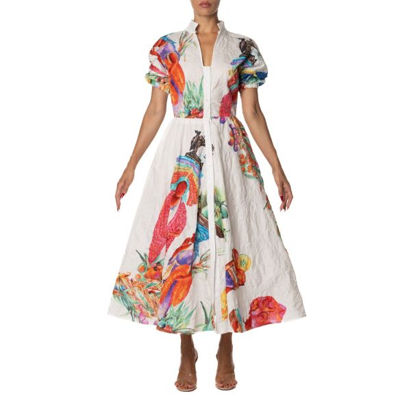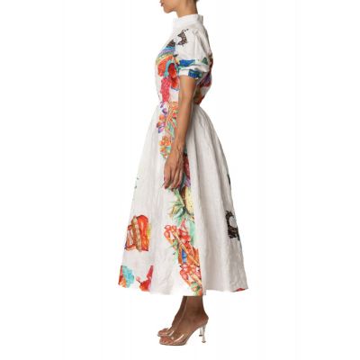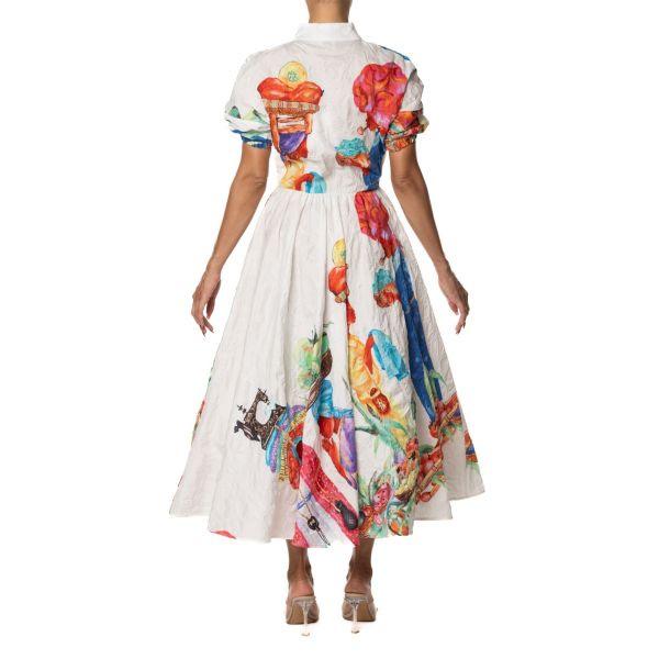 PRINTED MIDI DRESS WITH PUFF SLEEVE