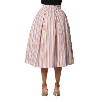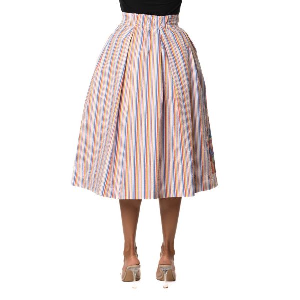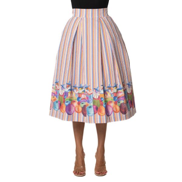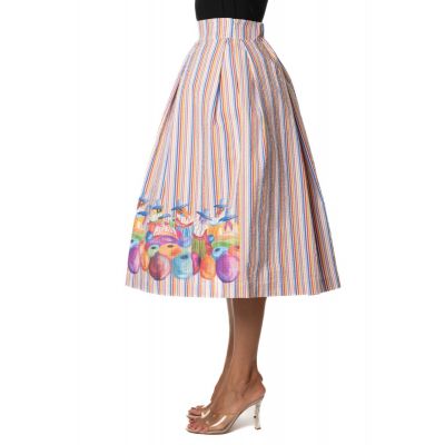 STRIPED WIDE SKIRT WITH PRINT ON BOTTOM